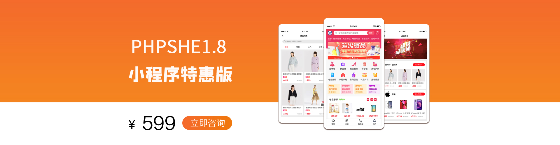 PHPSHE是一款支持三級分銷的商城系統, 支持自營、聯營、招商等多種運營模式,并擁有零售、拼團等多種業務模式,幫助企業低成本快速構建在線商城,在PC、APP、微信等環境下開啟電子商務業務。
